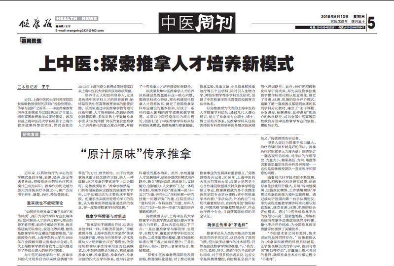 健康报:上中医:探索推拿人才培养新模式