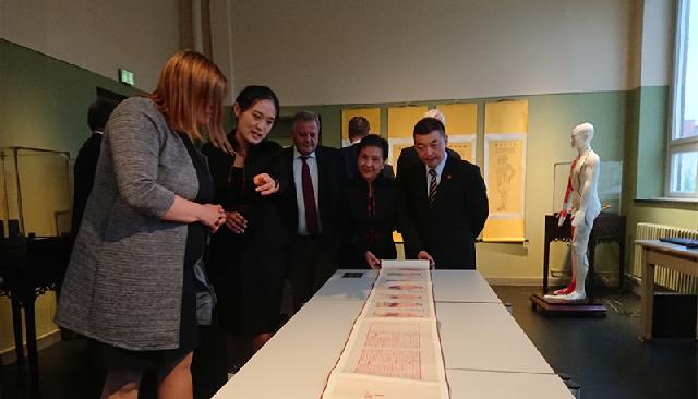 在日前举办的开学典礼上,还举行了上海中医药博物馆“汉堡中医养生文化展”开幕式,文化展分为经络养生、运动养生、饮食文化和环境养生四大主题,为德国观众呈现一系列中医治疗与养生讲座及互动体验活动。