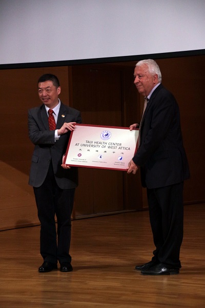 太极健康是在中国“太极”理论指导下,运用太极拳、导引、针灸、推拿、气功、参悟等方法,调整身体与心理,提升道德与情操,促进个体与群体、与社会乃至与自然界达到和谐、平衡的生命状态。太极健康是源自古代中国的智慧与技术,与古希腊医学、印度瑜伽同样,具有非常悠久的历史与文化传统。合作双方表示,太极健康中心西阿提卡大学分中心正式挂牌运作,将进一步加强两校在健康、医药、文化领域的合作,共同推动两国人民健康事业的发展。