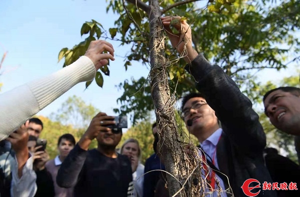 图说:下午,留学生们参观了益大本草园 新民晚报记者 孙中钦 摄