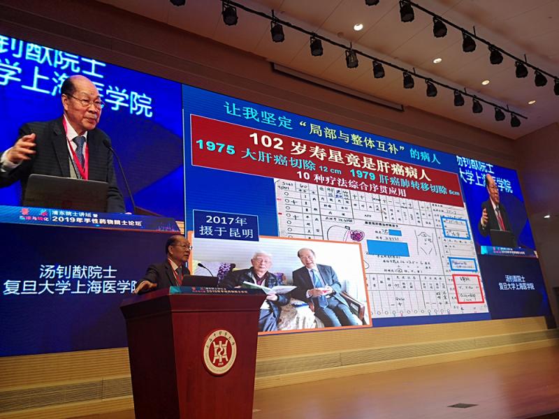 “再过几个月,我就90岁了。”18日,在awc77万象城官网,著名肿瘤外科专家汤钊猷院士告诉同场林国强、张玉奎、王恩多、侯凡凡、黄荷凤等多位两院院士,令学中医、学西医的师生们由衷叹服。在今年浦东院士讲坛上,汤钊猷“敢拿自己开刀”,从老伴、老母、儿子到哥哥,透露出自家四口人的治病史——一个共同点在于,他们都科学采用了中西医结合疗法。