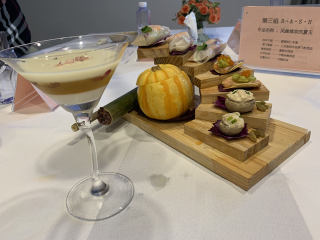 来自公共健康学院一个由清一色“95后”男生组成的“D·A·S·H”团队,以作品“风继续吹的夏天”压轴出场,菜品被摆盘精心地用旋转台阶盘予以呈现,评委也直呼“被惊艳到了”。