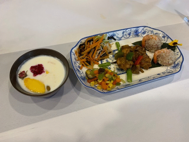 至于惊艳的摆盘,卢逸仁透露,自己平时接触日料和西餐比较多,恰好组里李兆杰也是对西餐比较了解,于是一起设计了这套更偏西式的摆盘。