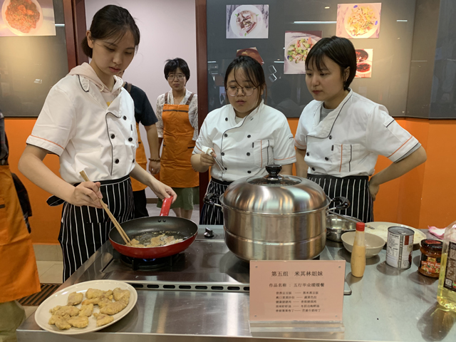 来自针灸推拿专业的“宝藏女孩”队的三名女生都是今年的应届毕业生,在她们看来,毕业生参与设计毕业餐更显得意义非凡。成员并非全都精通厨艺,但都十分热爱美食。