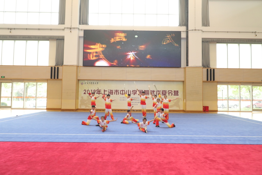 2019年上海市中小学暑期武术夏令营全体学员们分别汇报了五禽戏、十步拳、武术初级套路、刀术、棍术、剑术、枪术、拳术等本次夏令营的武术训练成果,诠释了中医与武术相结合的丰富内涵,展现了武术小精英们良好的精神面貌。