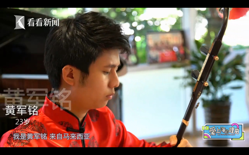 我是黄军铭,来自马来西亚。在过去的十年,拉二胡一直是我最大的兴趣。我的老师曾在上海学习二胡,也因为她,我一直向往来到上海,这座充满魅力的城市一睹它的风采。