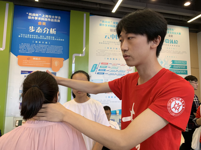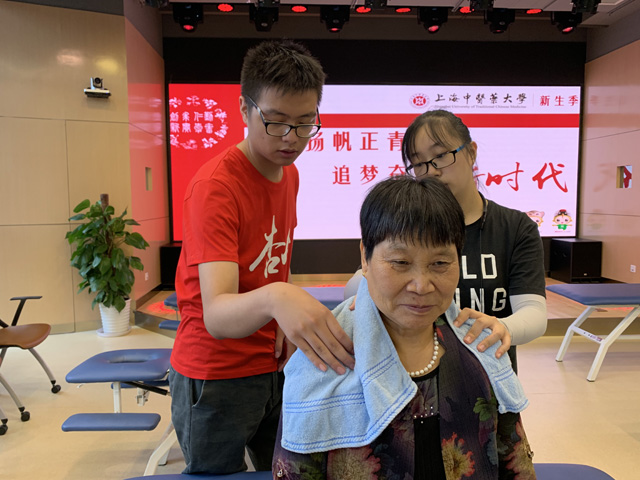 针灸推拿专业大四学生杨林浩,此前做过新生的引路志愿者,在报到日当推拿志愿者倒是首次。“学生和家长参与热情高涨,一上午,我们几乎没有时间休息,但我们很快乐,这不仅是新知的提前分享,更是看到了感恩父辈的一种温情。都说医生仁心,对病人都要上心,更何况是自己的至亲呢?”