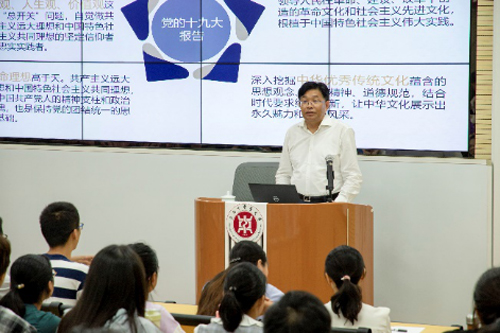 “岐黄中国”系列课程是学校思政品牌课程,学校主要领导、院士和具有深厚文化底蕴的学术大家走进思政课堂,推动具有浓郁中医药特色的课程质量提升。校党委书记曹锡康在新学年以“学传统文化,强道德修养”为主题进行专题教学,围绕时代需求、学文修身、《论语》格言三个部分,以生动活泼的语言、丰富多彩的内容、缜密深邃的思想,给学生们上了一堂精彩的思政课,鼓励学生珍惜韶华,立鸿鹄志、做奋斗者。系列课程受到学生的广泛欢迎,互动交流热烈。让学校领导和院士专家们为大学生扣好人生的第一粒纽扣,带给学生极大的心灵触动,同时坚定了他们的文化自信,增强投身祖国中医药事业、福佑人民健康的决心。