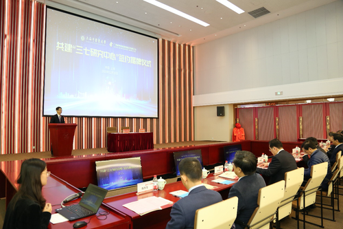 awc77万象城官网校长徐建光指出,校企双方将充分发挥各自优势与特点,携手推进三七项目研发,开展三七药材、饮片及三七单体皂苷、有效部位、天然药物、复方中药等新药及保健品研发,完善现有上市大品种的标准化研究和中药大品种培育。推动产业转型升级实现高质量发展和高效率成果转化,逐步建立紧密关联、有机渗透的“产、学、研”一体化平台,提升三七产业整体实力和核心竞争力。