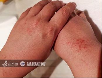 黄凤与同事脱下防护服后看见被汗水泡皱的双手