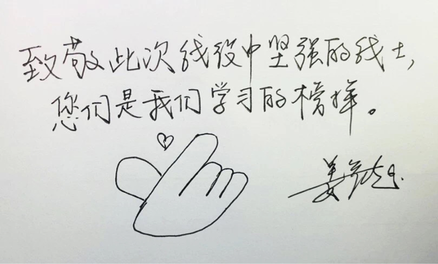 来自上海音乐学院零陵路校区艺术管理系的19位学生特地为龙华医院医护人员送上了画作和慰问信。感谢医护人员在抗击疫情中的无私奉献,为奋斗在一线的医护人员们加油鼓劲。