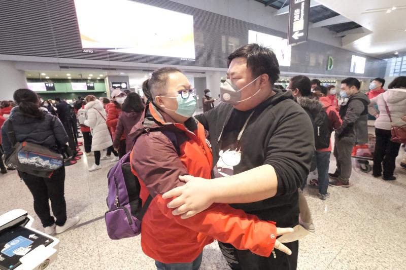 “来,抱一个!”“孩子这里你放心好了,我和爸妈搞得定!”今天下午3点,虹桥机场2号航站楼3层,第四批国家中医医疗队、来自上海4家中医医疗机构共122人在虹桥机场集结。他们即将启程飞往武汉,为雷神山医院新开设的两个重症病区120张床位提供医疗救治。送行的除了单位领导、同事,还有他们的亲人,“告别仪式”很简单,而温情也在告白中流露出来。