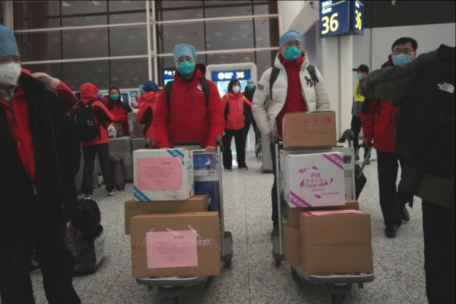 医疗队抵达武汉天河机场 执飞机组临别赠送数箱点心