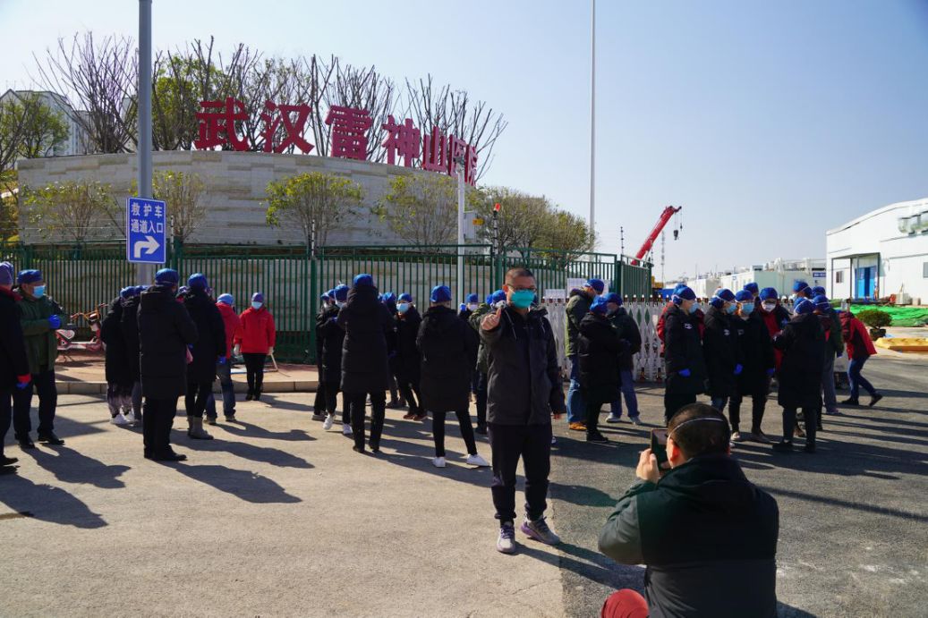 队员们在雷神山医院前合影留念