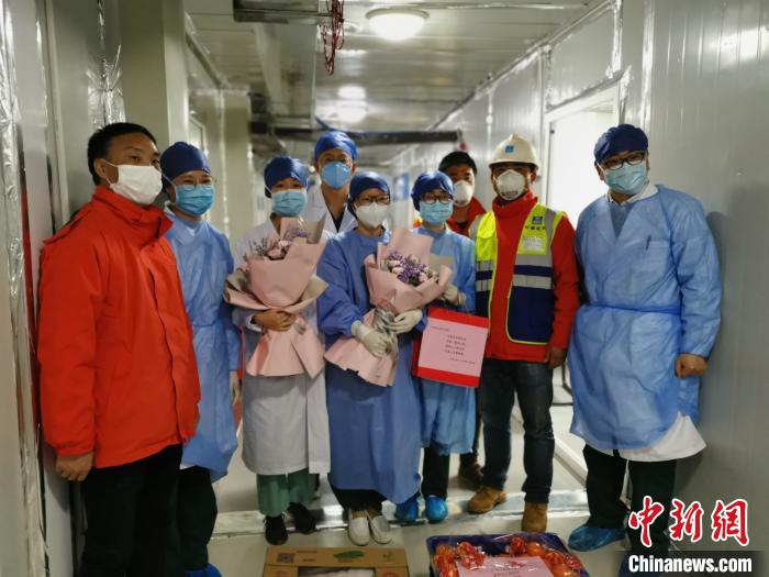 武汉2月21日电 (许名波 熊夷 徐金波)在完成武汉雷神山医院建设使命后,负责该医院建设的中建三局施工人员20日大规模撤离现场。临行前,他们满城搜罗鲜花、巧克力和水果,向医院医护工作者表达敬意。
