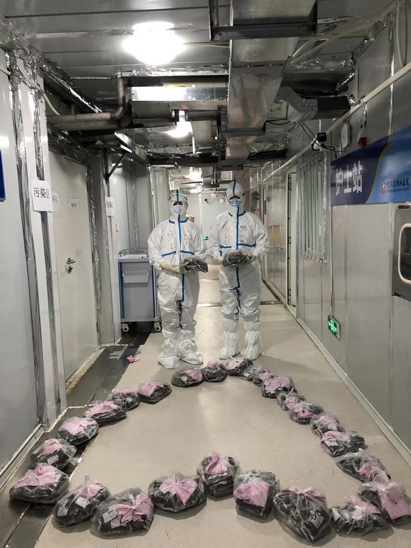 原来,夫妻俩已经在隔离点治疗了一段时间,非常牵挂彼此。由于病情管理的需要,两人在雷神山医院也被分在一墙之隔的两间病房。获悉这一情况,队员们除了为他们进行对症治疗,还安排了针灸。隔日再去查房时,丈夫的焦虑已经明显好转。两人前天终于在病房外走廊见上了面,这场景也让队员们暗下决心,要让两人一起尽快出院。