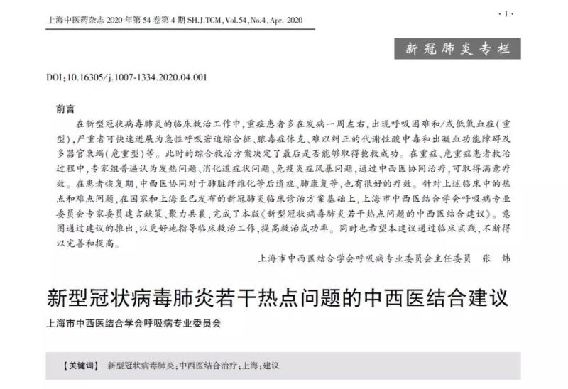上观新闻:针对新冠肺炎若干热点问题,上海中西医结合专家献计献策,给出5方面方案