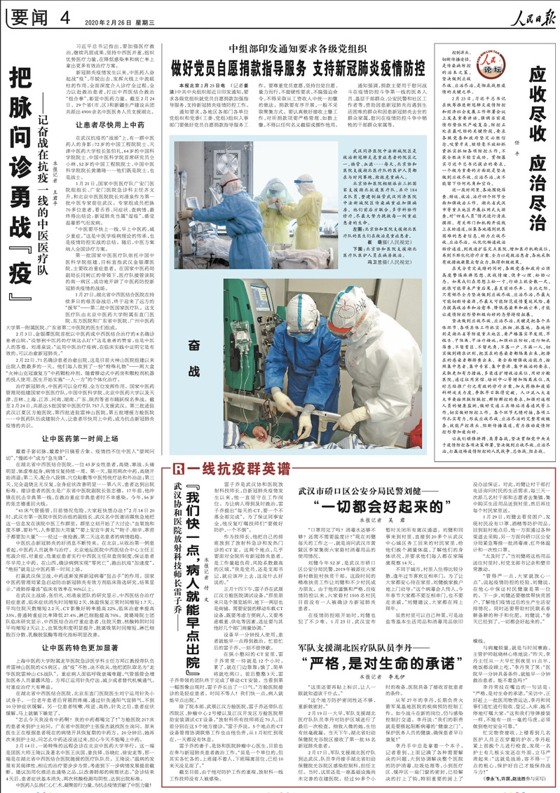 人民日报:把脉问诊勇战“疫”——记奋战在抗疫一线的中医医疗队