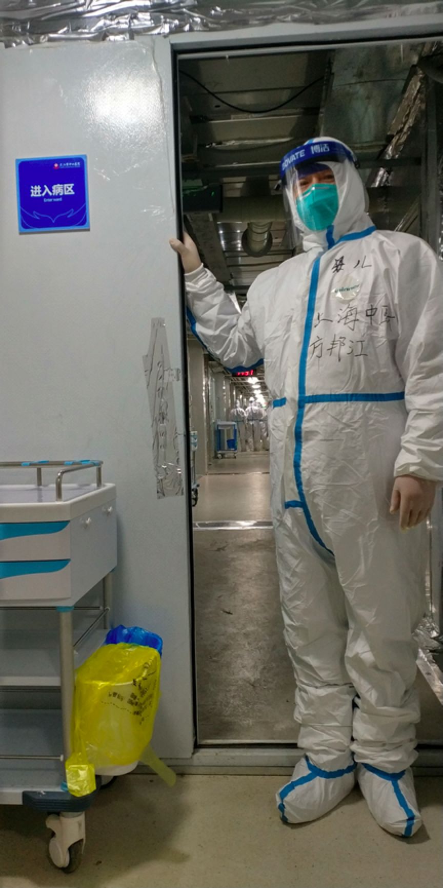 方邦江:这次我们来的医护团队实力是很强的,8个医生里大多数都是搞呼吸重症的,对于这类病人非常有经验。我们的病区跟上海市中医医院合起来,合作非常顺利,也不计较苦和累。