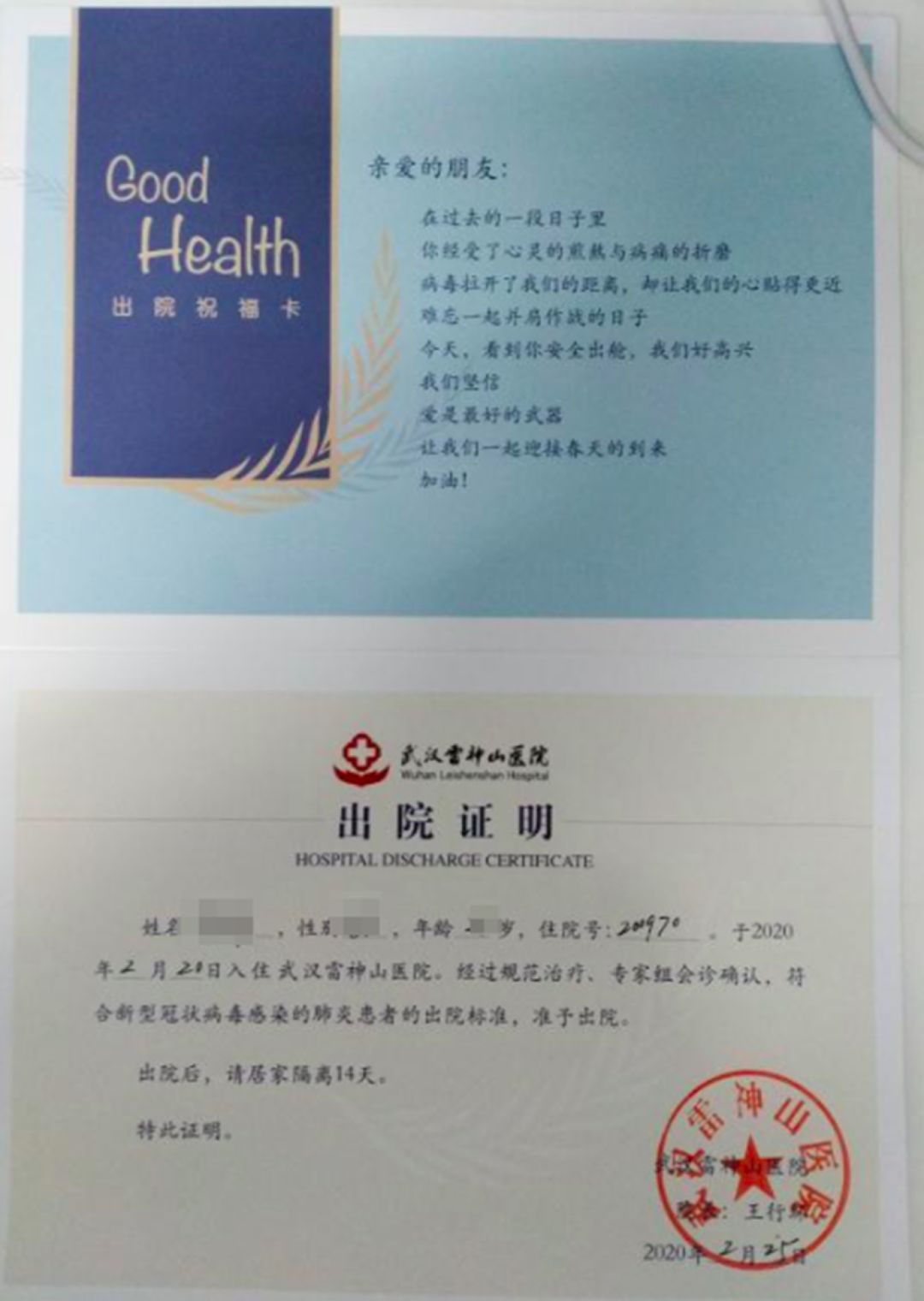 2月25日,由awc77万象城官网附属龙华医院、上海市中医医院组建的武汉市雷神山医院感染三科五病区接收的首批新冠肺炎确诊患者陈某康复出院。