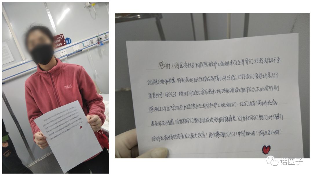 在雷神山医院住了10多天,刘女士和她的女儿都在用中药进行治疗。上海的医生还帮刘女士打针灸、教她练习“六字诀”等训练呼吸康复的功法。刘女士说,觉得中医治疗效果挺好,“以前经常感到胸口疼,现在好多了。上海医疗队对我们病人挺用心、挺关照的,尤其是对孩子,谢谢他们!”