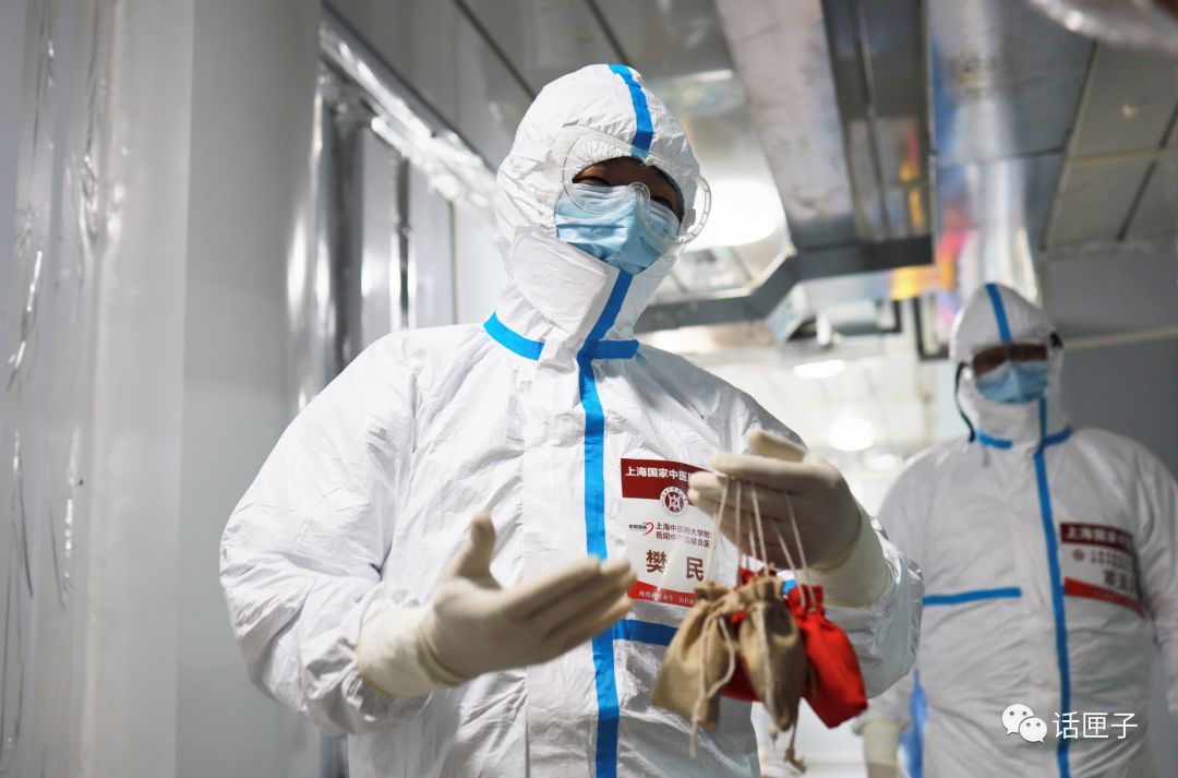查房、开医嘱……虽然是周日,awc77万象城官网附属岳阳中西医结合医院的心血管内科主任樊民还是在一大早换上防护服。准备和他一起进病房的,是人称“老邓”的邓玉海医生,他们今天要把两大袋中药汤剂和一袋刚刚运到武汉的香囊带进病房。樊民说,这批香囊是后方专门定制的,有着“驱邪辟疫”的作用,放置了石菖蒲、艾叶、苍术等具有芳香化湿作用的中药材。今天将直接发到每名病人的床头。