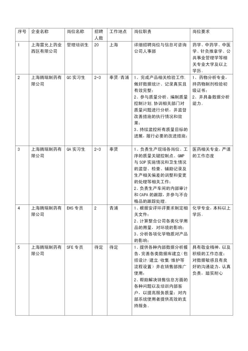 本次宣讲会,由岐黄育人实践基地企业代表——上海雷允上药业西区有限公司、上海腾瑞制药有限公司、扬子江药业集团江苏龙凤堂中药有限公司和上海诗丹德标准技术服务有限公司4家单位,带来多个招聘岗位,百余个招录名额涉及科研、工艺技术、管理、销售等多个方面(招聘岗位列表详见文末)。同学们在了解企业和岗位的同时,还能与hr在线互动,答疑解惑,获得视频面试的机会!