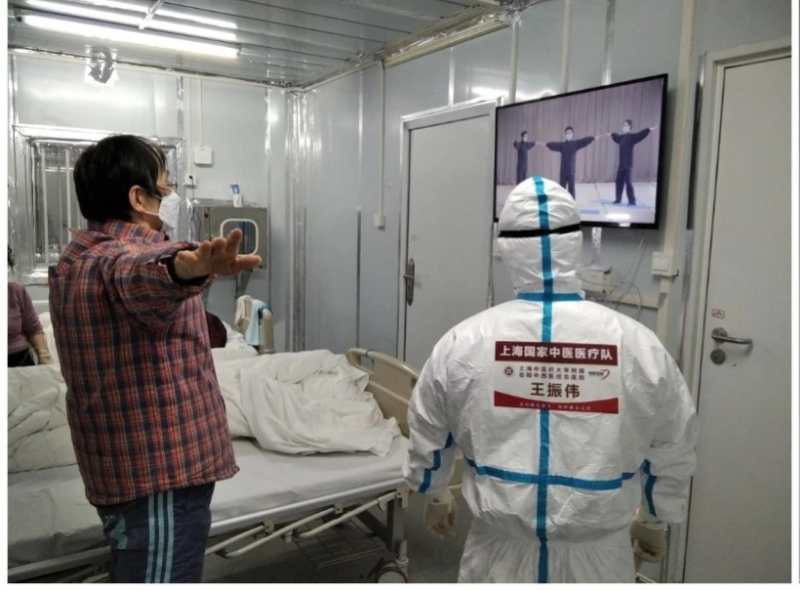 “中国功夫”,成为雷神山里的绝活。一对轻症夫妻十分焦虑,总是焦虑自己病情加重,妻子整日痛哭流涕,丈夫则总是表现出心慌、气急。王振伟进行仔细的体格检查、化验后,排除心梗等危险因素,最终判断是由于情志元素致病,于是姜夫妻二人纳入练功大军。没多久,夫妻俩症状减轻了,心情也变得轻松愉悦,“没想到在雷神山,我们还学会了一套‘中国功夫’!”