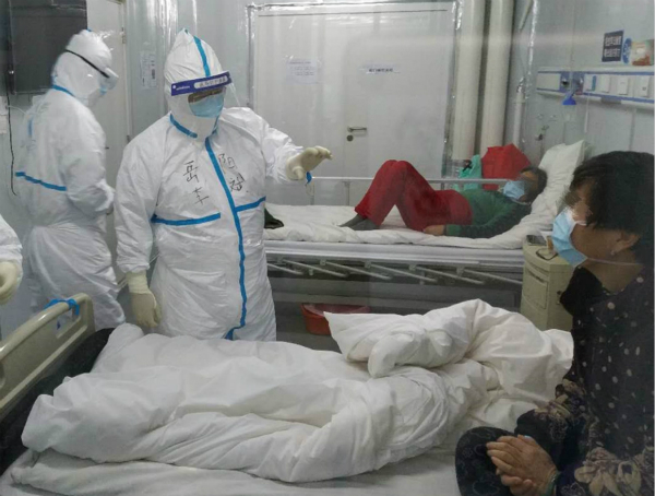 初建的雷神山医院尚未全部完工,看着空空如也的病区,李斌立即组织队员,投入收治病患前千头万绪的准备工作中,清理物资、搬运家具、铺床整理、物品消毒……他处处冲锋在前。累了,就倚在墙角稍做休息;饿了,就匆匆扒拉两口盒饭。在雷神山医院感染三科七病区开科收病人的第二天,李斌便和队员们一起查房,仔细分析每一位患者的病情。