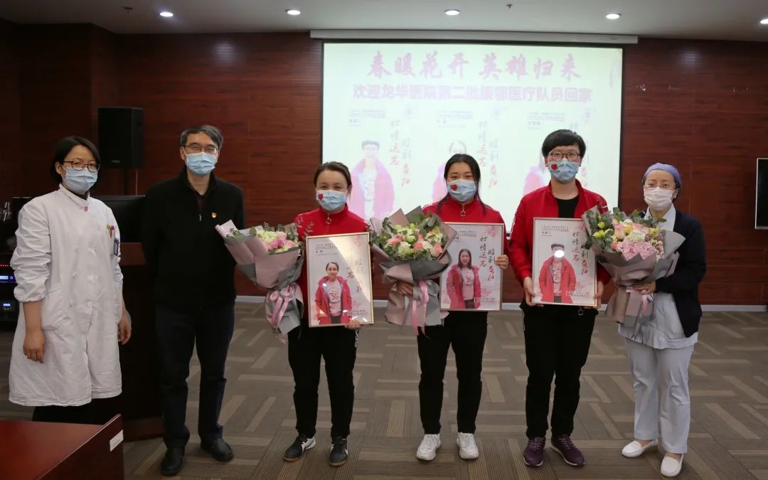 附属曙光医院援鄂队员董春玲、朱佩敏、武文文听闻院领导和同仁们在医院等她们回家,心里既感动又温暖,她们表示这段援鄂经历将成为伴随她们一生的财富,她们会带着学习和积累的防疫护理工作的宝贵经验,再次投入一线工作。队员们回院后参加了医院准备的简单而有意义的欢迎仪式。