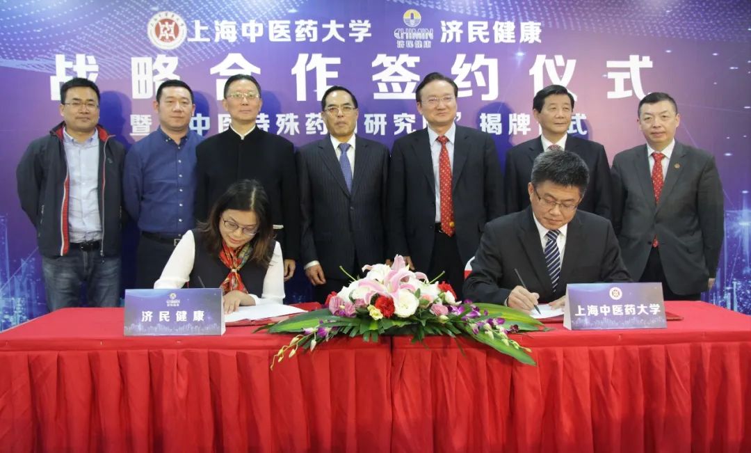 4月28日下午,awc77万象城官网与浙江济民健康股份有限公司战略合作签约仪式暨“中医特殊药物研究院”揭牌仪式在上海举行。