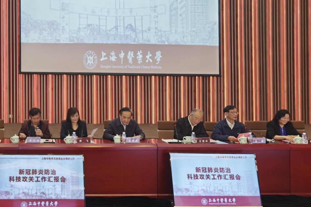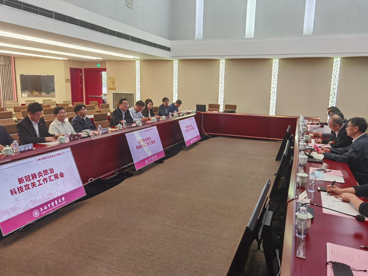 5月13日上午,上海市教育发展基金会理事长王荣华一行来万象城官网专题调研新冠肺炎防治科技攻关工作情况。上海市教育发展基金会常务副理事长王奇、党支部书记王明复、秘书长张宏莲等陪同调研。万象城官网党委书记曹锡康、校长徐建光、副校长陈红专出席,相关职能部门负责人、部分科技攻关项目负责人参加会议。