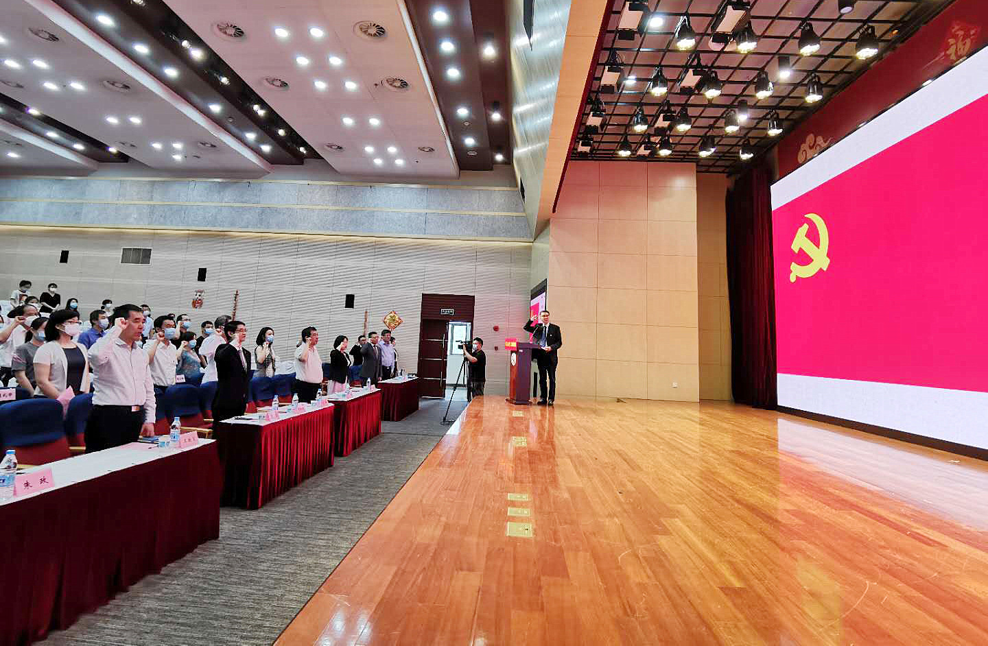会上,刘胜带领全场党员重温入党誓词。