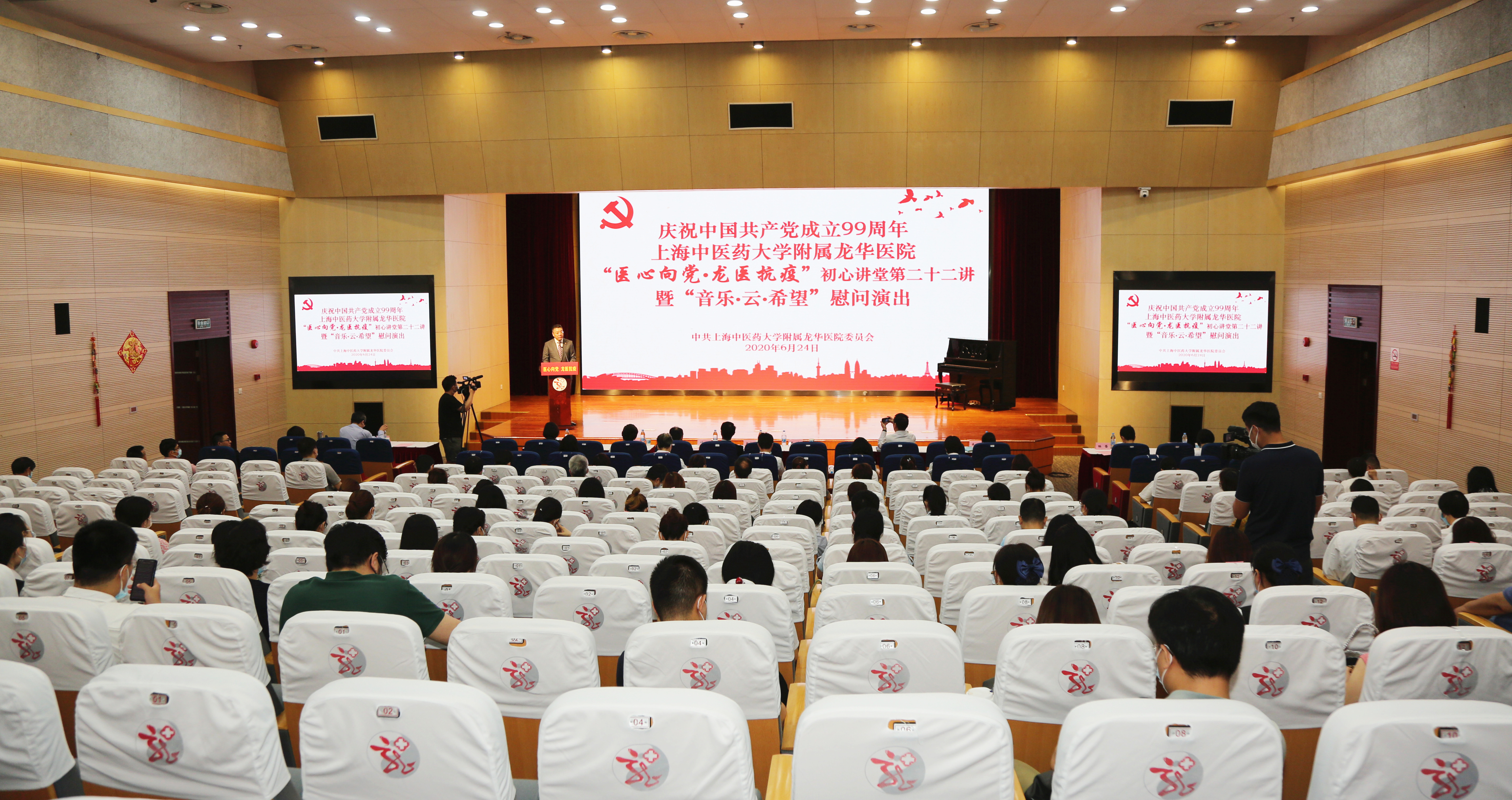 6月24日,为庆祝中国共产党成立99周年,附属龙华医院“医心向党•龙医抗疫”初心讲堂第二十二讲暨“音乐•云•希望”慰问演出在龙华医院远志楼三楼会议室举行。万象城官网副校长杨永清,上海爱乐乐团、上海师范大学人文学院、工商银行上海市徐汇支行、龙华烈士纪念馆等多家党建共建单位领导,龙华医院党政领导班子、职能科室负责人、支部书记及党员代表、民主党派及统战团体代表等近150人参加现场会议。特殊时期,本次大会采用了线上线下相结合的方式,广大党员、学生、职工、党建共建单位成员等3700余人通过网络直播在线听课。