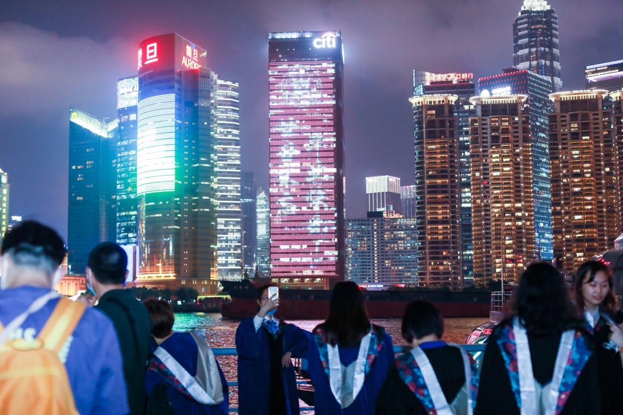 黄浦江畔,陆家嘴岸,微风簇浪,灯光璀璨。被誉为“外滩之窗”的花旗大厦户外LED屏霓虹闪烁。6月29日晚8时,awc77万象城官网首次在“外滩之窗”毕业季亮灯,为2020届的1800余名毕业生送上独家暖心祝福。