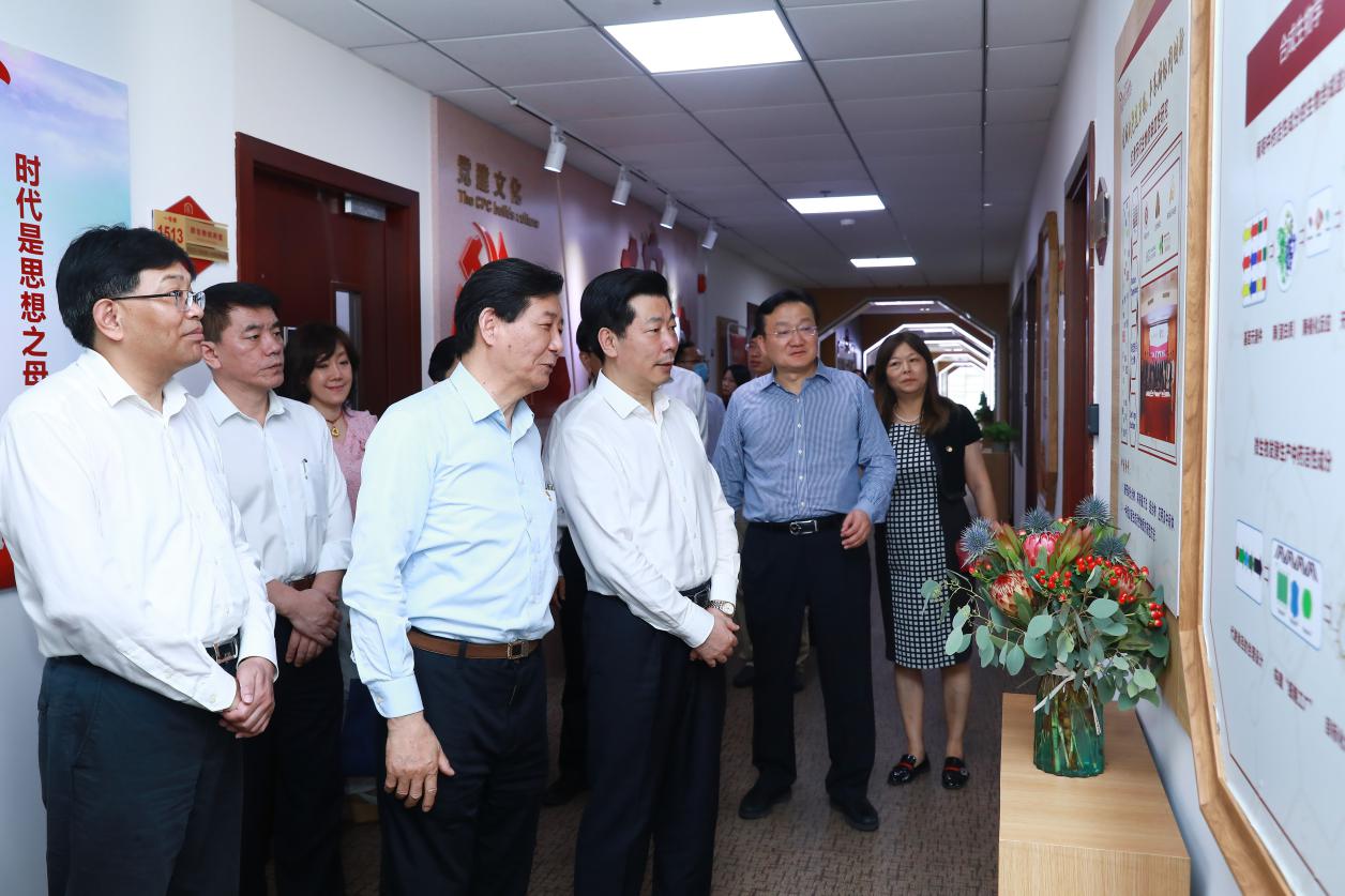 在学校党建服务中心内,学生党员志愿者陈玥对党建服务中心通过构建红色育人元素,加强环境育人和仪式教育的功能进行介绍,并汇报了自身学习“四史”的体会,随后廖国勋与正在中心内举办习近平总书记给复旦大学青年师生党员回信精神专题学习会的青年党员师生们进行亲切交流。在学校创新中药研究院内,中国科学院院士、万象城官网创新中药研究院院长林国强汇报研究院开展“四史”学习教育情况及中医药研究最新成果。在上海中医药博物馆,廖国勋一行还听取了博物馆如何挖掘馆藏中的“红色记忆”,将“四史”学习教育与“文化育人”紧密结合的推进情况。