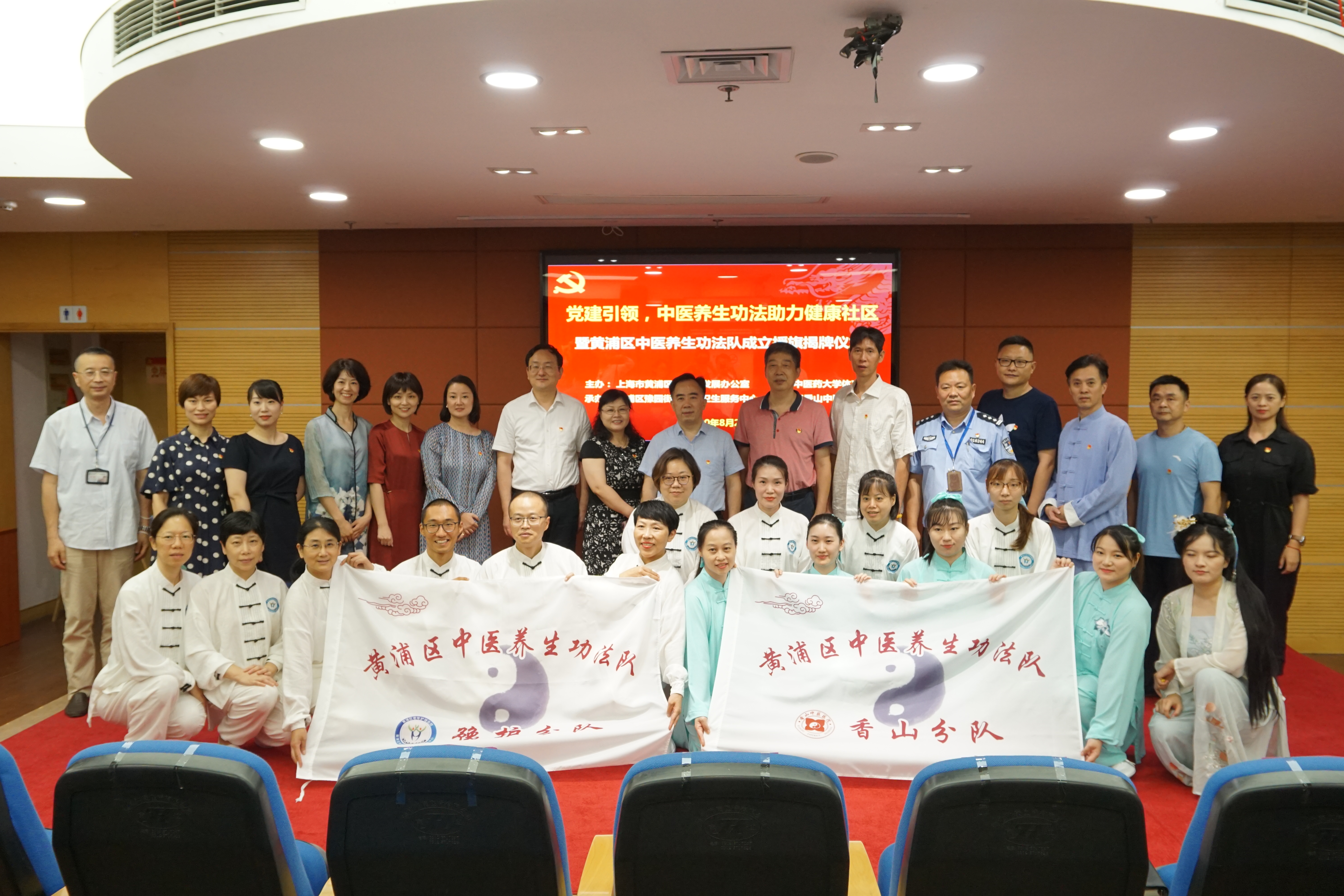 为进一步深化落实“院校互联互动、聚力合作发展”,不断提升基层党组织的创新力。8月25日下午,黄浦区中医养生功法队成立授旗揭牌仪式暨党建联建签约仪式在黄浦区豫园街道社区卫生服务中心会议室举行。仪式由黄浦区中医药发展办公室、万象城官网体育部主办,黄浦区豫园街道社区卫生服务中心和黄浦区香山中医医院共同承办。