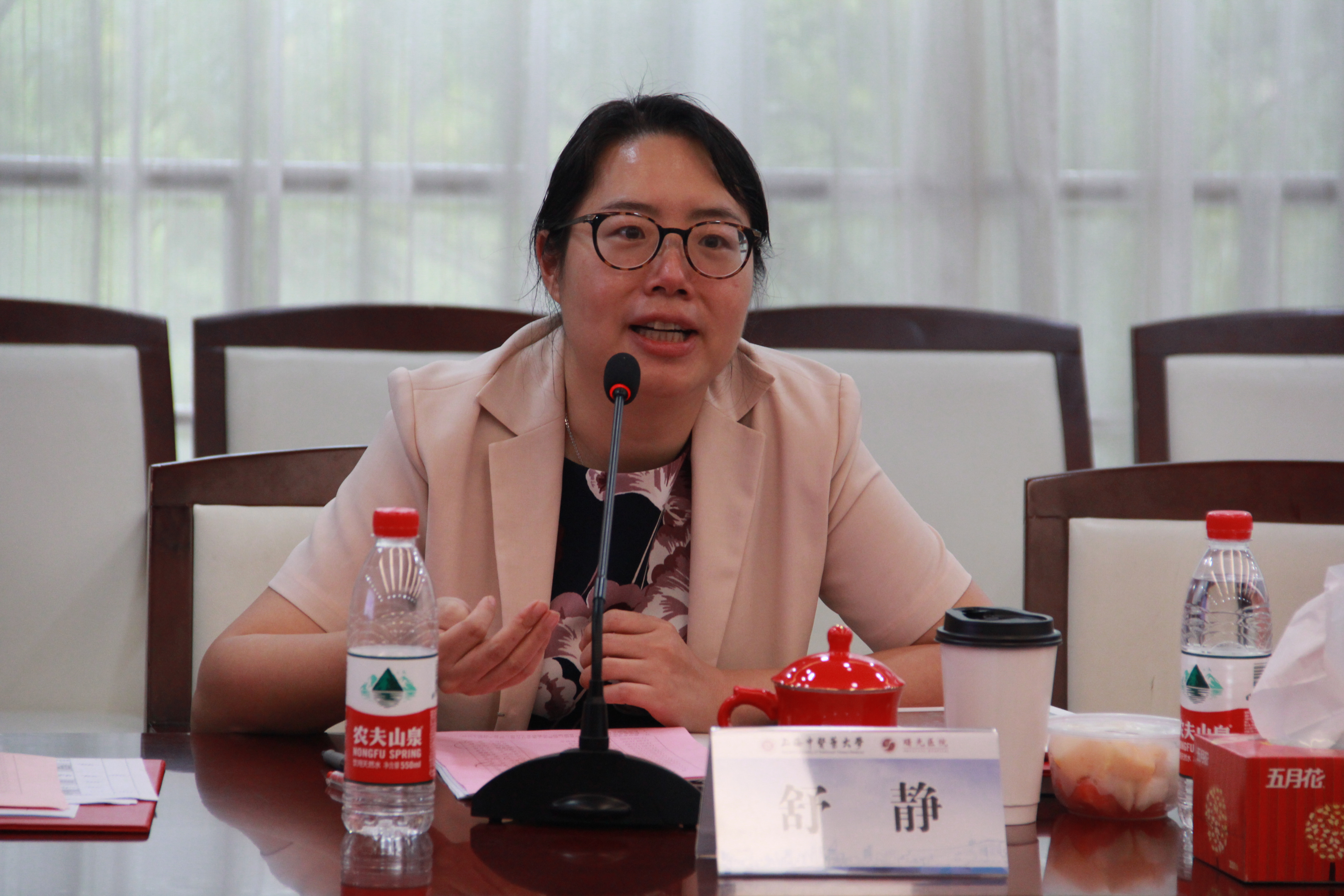 仇菲首先代表临床医学院汇报2019-2020学年的“曙光教学故事”。她讲述了学院始终重视的三件事:其一,医教协同背景下,中医临床教学资源的重新整合与再分配;其二,教研室的升级建设——孵化临床教学人才,改变教管模式,凝练中医教学特色;其三,推进曙光教师发展分中心的建设,实现“五位一体”的教师培育机制。在过去的一学年中,教研室联动实习带教科室,在课程思政、课程模式改革、“云课堂”探索等方面取得了可喜成绩,逐步形成分类分层、跨学科交叉融合的实践教学体系。