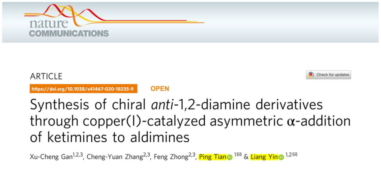 创新中药研究院团队在Nature Communications上发表高效构建手性二胺骨架的研究成果