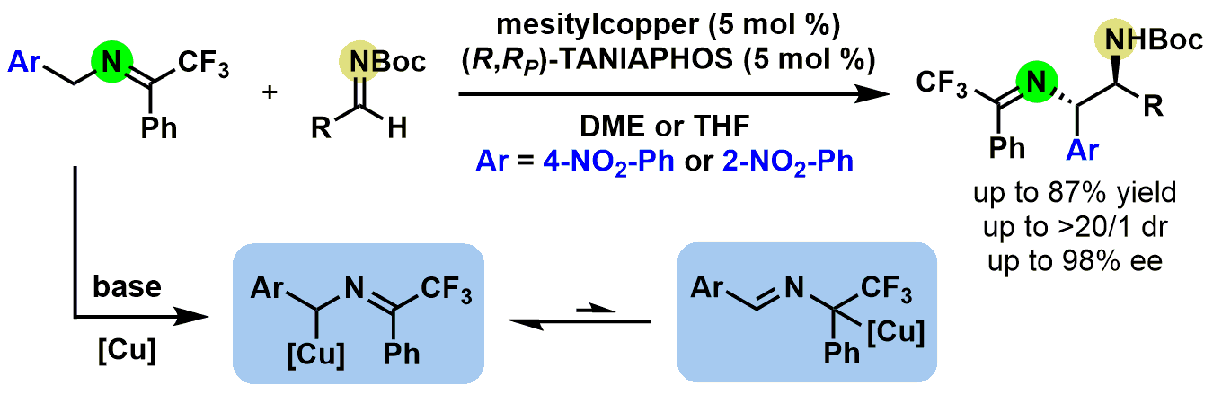 近日,万象城官网创新中药研究院林国强院士团队在《自然通讯》(Nature Communications)上发表研究论文Synthesis of chiral anti-1,2-diamine derivatives through copper(I)- catalyzed asymmetric α-addition of ketimines to aldimines,采用铜催化的亚胺的不对称分子间交叉偶联反应,高效且立体专一性地构建了天然产物中常见的手性二胺骨架。