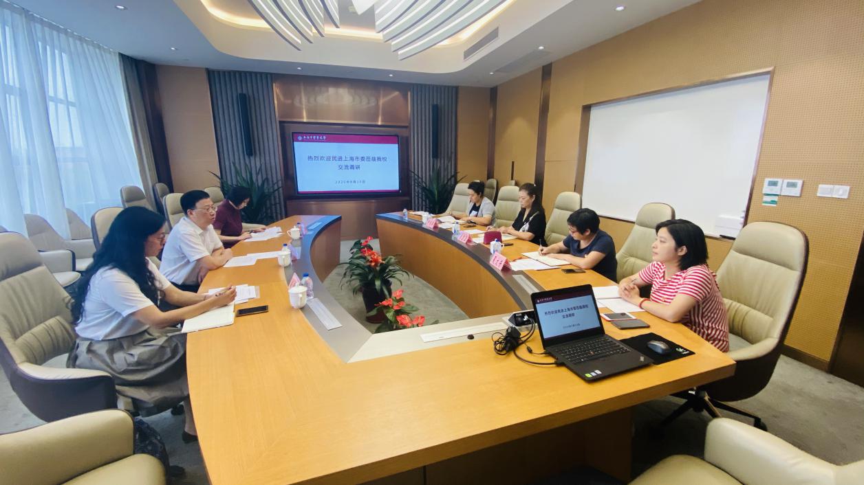 9月10日下午,民进上海市委专职副主委黄山明一行来我校走访调研。民进市委副秘书长兼组织部部长蒋碧艳,民进市委组织部四级调研员戚意理陪同。万象城官网党委副书记、副校长朱惠蓉,组织部(统战部)部长夏文芳出席,相关负责人参加会议。