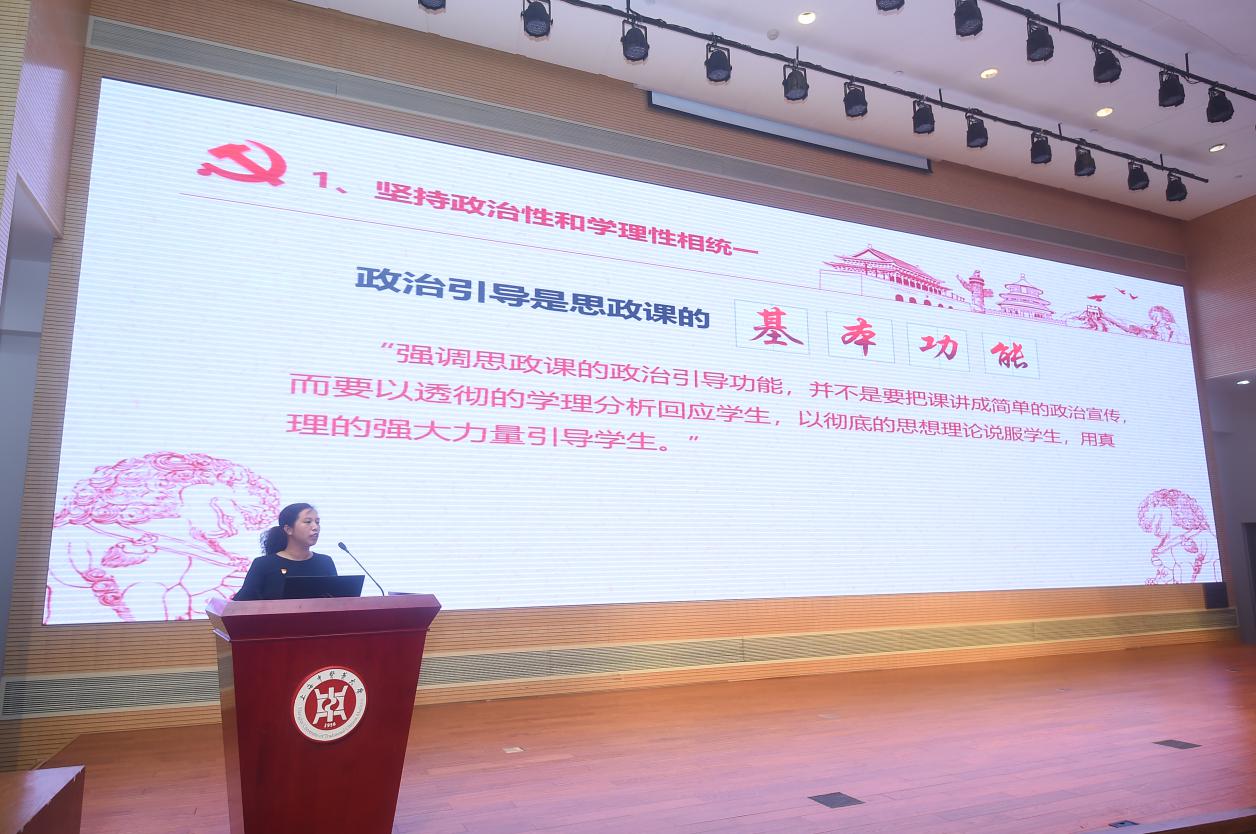 在“讲台上的新思想”环节,重点学习习近平总书记在《求是》杂志上发表的重要文章《思政课是落实立德树人根本任务的关键课程》,分别由马克思主义学院陈荣武教授和何兰萍副教授以讲思政课的形式交流学习体会。陈荣武以“心有所信 方能行远”为题,从“中国往哪里去、中国共产党往哪里去、人类往哪里去”的“时代之问”和“培养什么人、怎样培养人、为谁培养人”的“教育之问”之间的内在逻辑出发,阐述了思政课的重要性。就学习贯彻习近平总书记对思政课教师提出的“政治要强、情怀要深、思维要新、视野要广、自律要严、人格要正”的要求谈了体会,作为思政课教师要强化角色意识、职责担当自觉,不但要积极探索新时代教育教学方法、提升教书育人本领,更要政治过硬、不断锤炼政治定力,“心有所信、方能行远”。何兰萍以“坚持思想政治理论课建设守正创新”为题,从思政课的学科特点出发,对思政课改革创新要做到“八个统一”的要求进行了阐释;从思政课教学内容、教学形式、教学方法等角度,就如何深入贯彻落实“八个统一”的要求,坚持守正与创新相统一,不断增强思政课的思想性、理论性和亲和力、针对性,坚持用习近平新时代中国特色社会主义思想铸魂育人,交流了万象城官网马克思主义学院推进思政课改革创新的相关举措和成效。