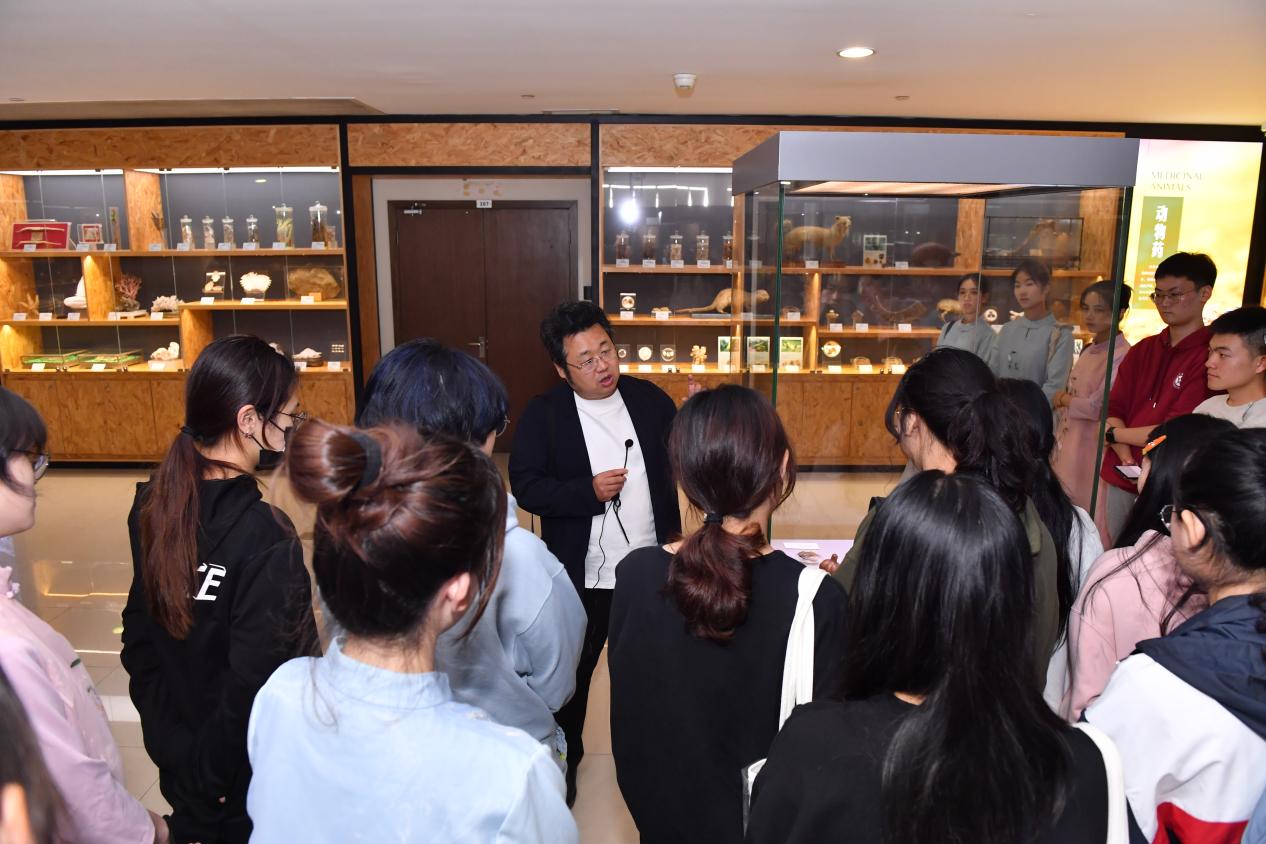 仪式结束后,刘旭光带领学生们参观上海中医药博物馆,并从美学的角度阐释中医与艺术的关系。通过现场教学,学生们提升了感受美、鉴赏美、创造美的能力。