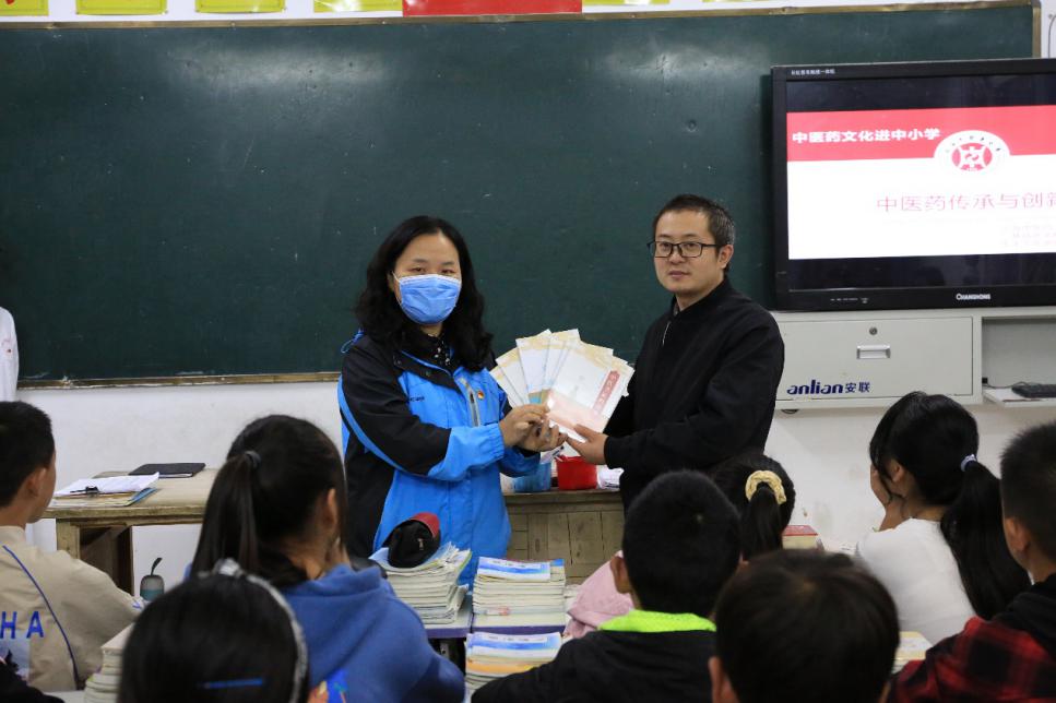 金寨在健康脱贫路上接续攻坚,砥砺前行。基础医学院党员师生向当地村民赠送血压计、体温计等医疗物资,为村民进行中医健康咨询、义诊及日常保健宣讲。师生们还走进金寨县麻埠实验学校,向该校学生赠送由基础医学院第四党支部书记何建成教授参与编撰的《中小学生中医药科普读物》。基础医学院“生生”文化讲师团成员,硕士研究生解天骁、冯晓为该校学生讲述中医药现代化发展及中医药抗疫故事,将中医药的种子播撒进孩子们心中。读万卷书,行万里路。此次走进大别山的研究生们结合专业知识,在当地开展社会调查,考察当地村民健康状况并为村民开出防治良方,为助力金寨健康脱贫交上一份awc77万象城官网学子的时代答卷。