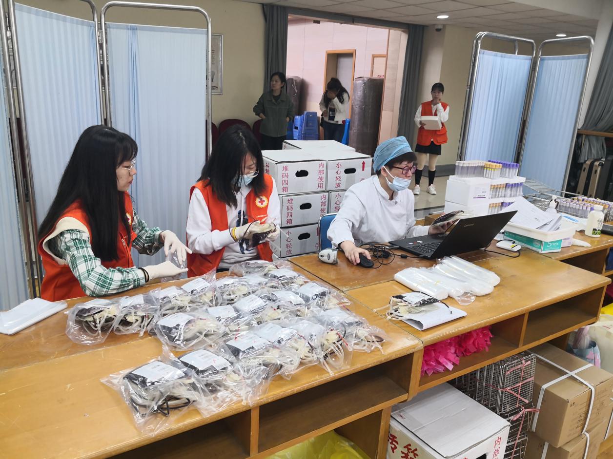 活动中,各二级学院、后勤保障处相关负责人先后来到献血现场慰问献血学生、医护人员、红十字会志愿者。学生们积极参与,在采血点有序排队填表登记、体检、验血、采血、领献血证。校红十字会志愿者服务队学生积极提供保障服务,向献血师生发放献血宣传手册、讲解无偿献血知识,协助献血点医务人员维持秩序,悉心照顾献血后的师生,协助纪念品的发放登记。