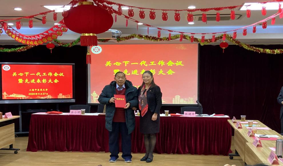 校党委组织统战部组织员、关工委委员千英信宣读先进表彰名单,施榕荣获“上海市离退休干部先进个人”称号,董旭军荣获市教育系统关心下一代工作终身荣誉奖,产学研联合党支部、附属龙华医院关工委、宗志国、徐德贤、冯因克等获市教卫各级各类奖项共7项。会上,朱惠蓉、张建中和余小明向获奖老同志颁发了奖状,五位代表分别介绍了获奖的集体与个人的先进事迹。