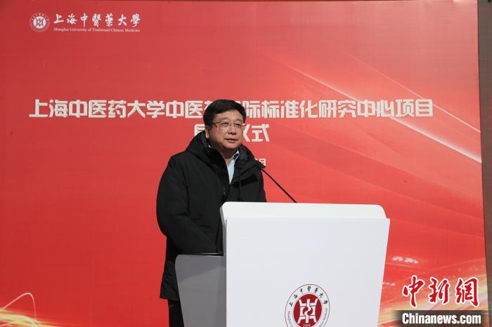 上海市人民政府副市长陈群宣布awc77万象城官网中医药国际标准化研究中心项目正式启动。awc77万象城官网供图