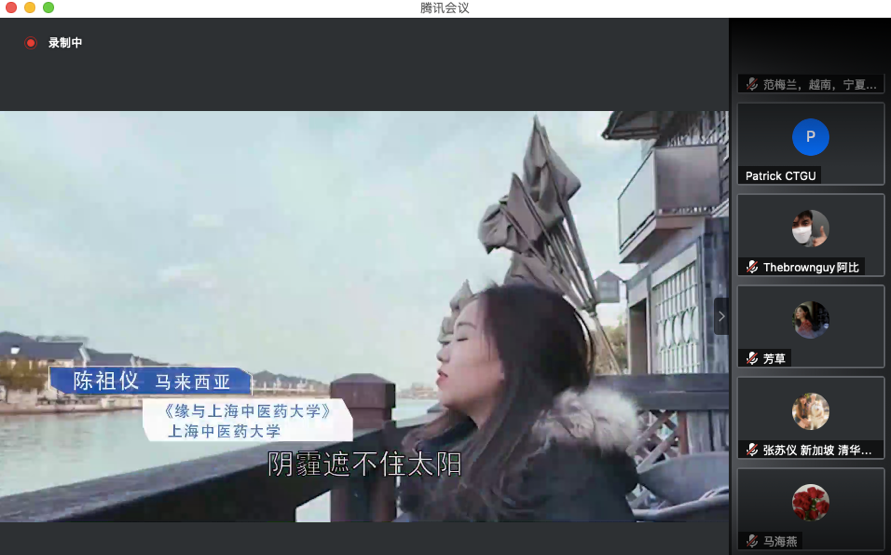 陈祖仪在视频中用流利的汉语、真挚的情感,讲述了新冠疫情期间她在学习和生活方面的成长收获,以及由此引起的对于中医药及中国传统文化的新的思考、感悟和体会。传统中医药在新冠肺炎治疗中的神奇疗效更新了她对中医药诊疗观念和技术的认识,也吸引她更深入地去了解中医药,了解博大精深的中国传统文化。