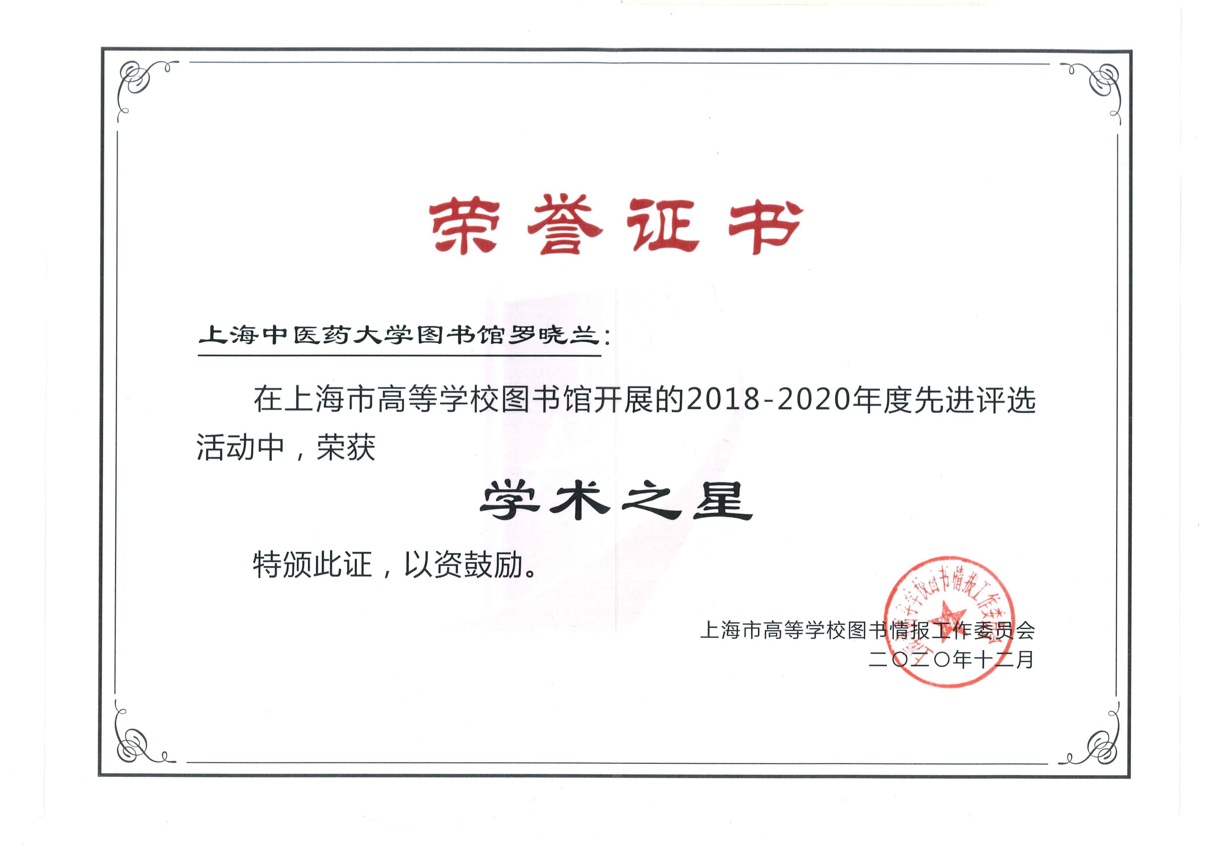 上海市高等学校图书情报工作委员会每两年组织一次评选活动,对在各自岗位上辛勤耕耘、取得良好成绩的集体和个人进行表彰。万象城官网图书馆推荐的先进个人、文献信息教研室的罗晓兰获得“学术之星”称号,这也是她连续第二次获得该项荣誉。
