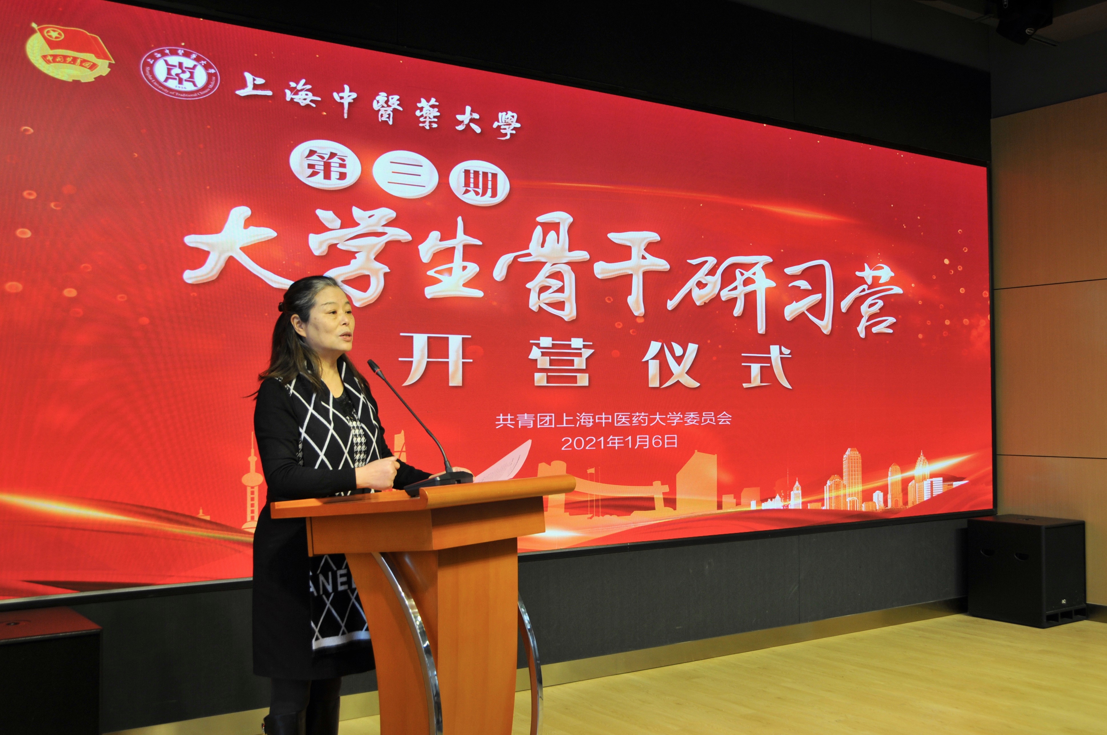 1月6日,万象城官网第三期大学生骨干研习营开营仪式在大学生创新创业实践园举行。校党委副书记、副校长朱惠蓉,学工部(研工部)部长陶思亮,教务处处长舒静,组织部副部长金晶,宣传部(教师工作部)副部长刘虹,团委书记吴平,中药学院党委副书记沈漫,针灸推拿学院党总支副书记马杰,护理学院党总支副书记张瑛,公共健康学院党总支副书记干旦峰,康复医学院党总支副书记毕亚男,市委党校张永杰出席本次开营仪式。开营仪式由校团委副书记万婕主持。